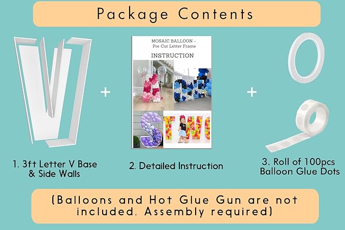 - FAST and EASY ASSEMBLY - Decorate your party like an event balloon artist! Our 3ft mosaic balloon letters are pre-cut to the perfect measurements, saving you the hassle of printing, measuring, and cutting templates yourself!