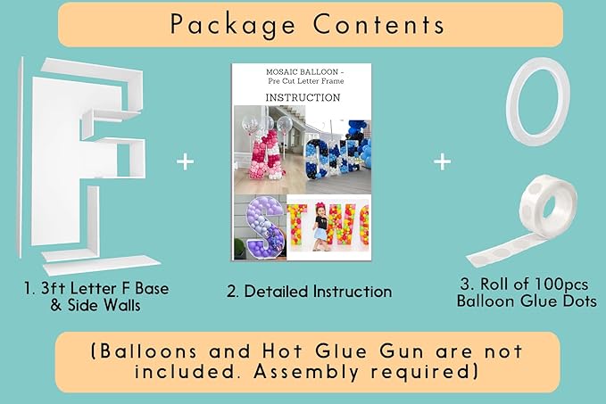 - FAST and EASY ASSEMBLY - Decorate your party like an event balloon artist! Our 3ft mosaic balloon letters are pre-cut to the perfect measurements, saving you the hassle of printing, measuring, and cutting templates yourself!