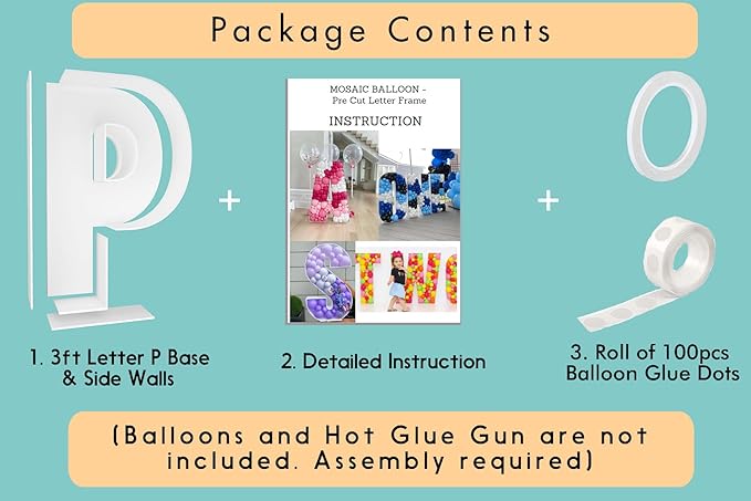 - STABLE, RELIABLE DECOR - Spend more time celebrating with family and less time fixing your decor. These mosaic letter balloon frames come with a flat bottom base made of sturdy foam board, so you don't have to worry about them toppling over.