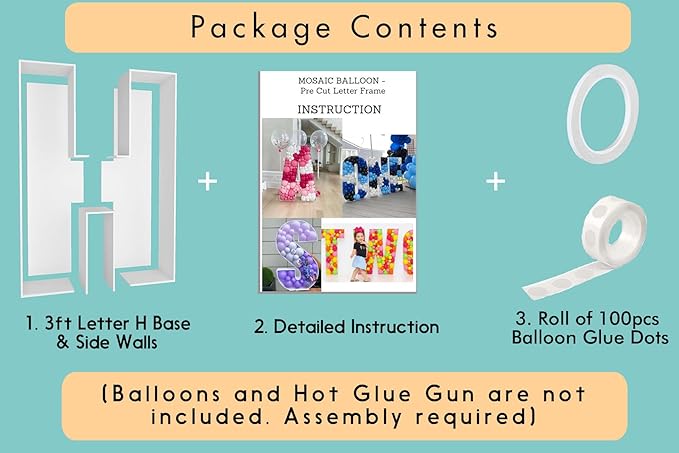 - FAST and EASY ASSEMBLY - Decorate your party like an event balloon artist! Our 3ft mosaic balloon letters are pre-cut to the perfect measurements, saving you the hassle of printing, measuring, and cutting templates yourself!