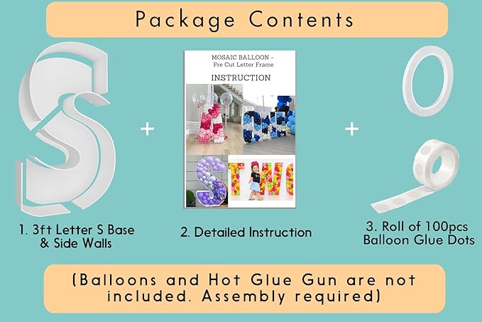 - FAST and EASY ASSEMBLY - Decorate your party like an event balloon artist! Our 3ft mosaic balloon letters are pre-cut to the perfect measurements, saving you the hassle of printing, measuring, and cutting templates yourself!