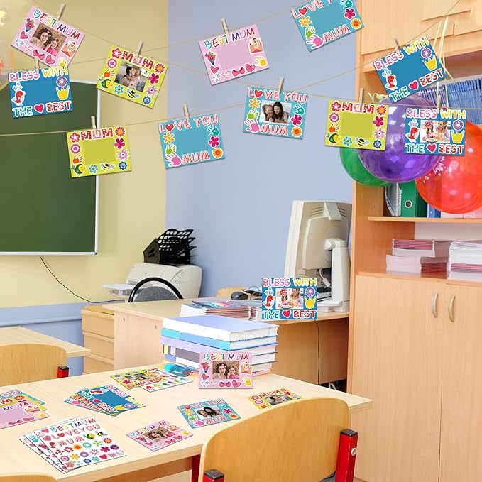 - 【Widely Used】The Mother's Day photo frame DIY crafts for kids can be used as Mother's Day party decoration to welcome every lovely Mother's Day day, used in various handicraft activities in school classrooms or home for preschool kids as Mother's Daytime games.They can be a part of school or family activity and keep kids busy with them.