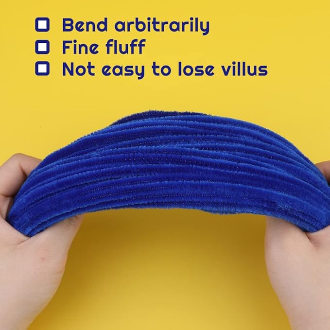 - HIGH-QUALITY MATERIALS: High-quality Blue pipe cleaners are made of metal wire and fiber, soft chenille stems pipe cleaners, not easy to fade, safe and harmless, for hard to clean areas, hanging light items, etc. Due to the production process, the fiber will fall off slightly, but it will not affect the normal use, please understand