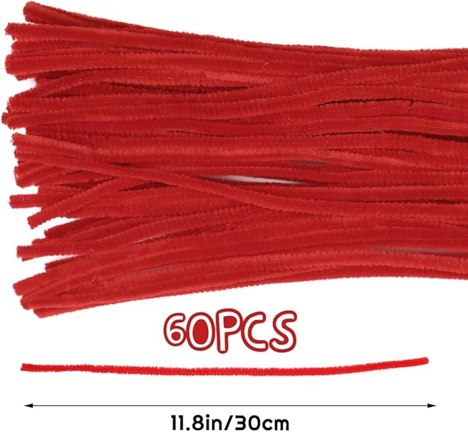 60 Red Pipe Cleaners, Chenille Stem Craft Supplies for Home Decoration & Arts Projects