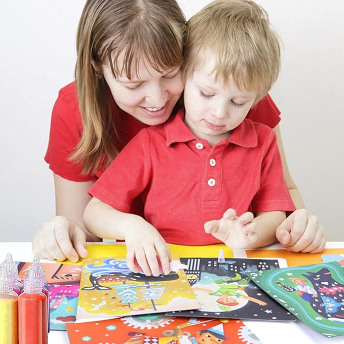 - Kid friendly:Kids can stretch their design and self-expression skills as they decorate and share the sand art kit.This educational toys can exercise children's hand-eye coordination,creativity and imagination,and improve children's cognitive ability during the production