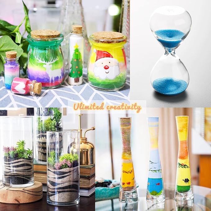 - Premium material:All of our 24 bottles of sand are made from dolomite,natural and safe,uniform particles,durable,will not hurt your hands and not fade