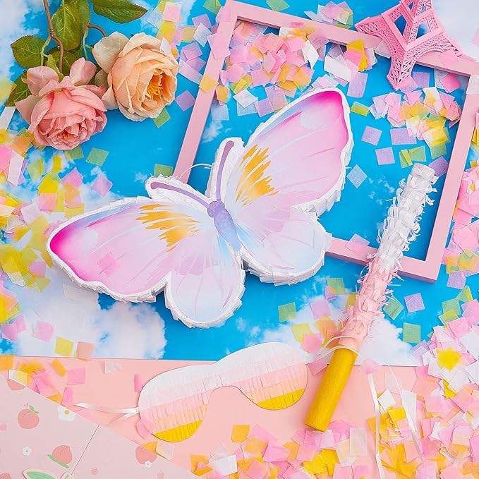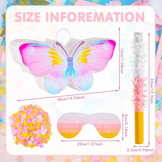 - Party Game Set: you will receive 1 butterfly piñata , 1 butterfly eye mask, 1 pack of confetti and 1 piñata stick to play fun games at various parties; The considerate set of butterfly decorations are easy to use and will meet your party game needs, Please check the size before purchasing