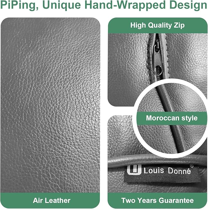 Louis Donné Unstuffed Pouf Ottoman,Faux Leather Ottoman Pouf Cover, Supersoft Handmade Moroccan Decor, Storage Solution, Foot Rest, Footstool, Pouffe for Balcony Office Indoor 21dia Grey