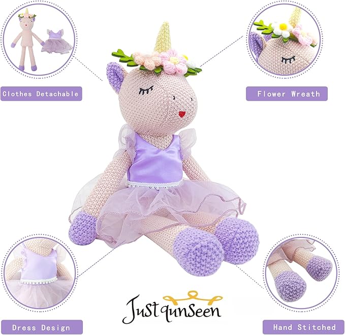- 【Quality Materials】:This Unicorn Toys for Girls age 4-6 is securely sewn from the highest quality polyester and acrylic fabrics with premium soft plush polyester plush cotton filling. The entire unicorn princess is 100% handmade. It is also made with wool crochet technique,which make it more comfortable.
