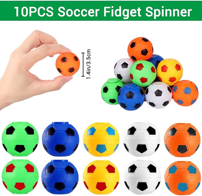 - FOOTBALL STRESS BALLS:With an diameter of 1.4 inch ,lightweight and portable, easy to use ,Simply hold the centre part of these football with two fingers, then play it with your other finger. you can have fun whenever you want,These fidget spinner football ball have more than 1 Min rotating time which can enrich your spare time and bring you more fun.