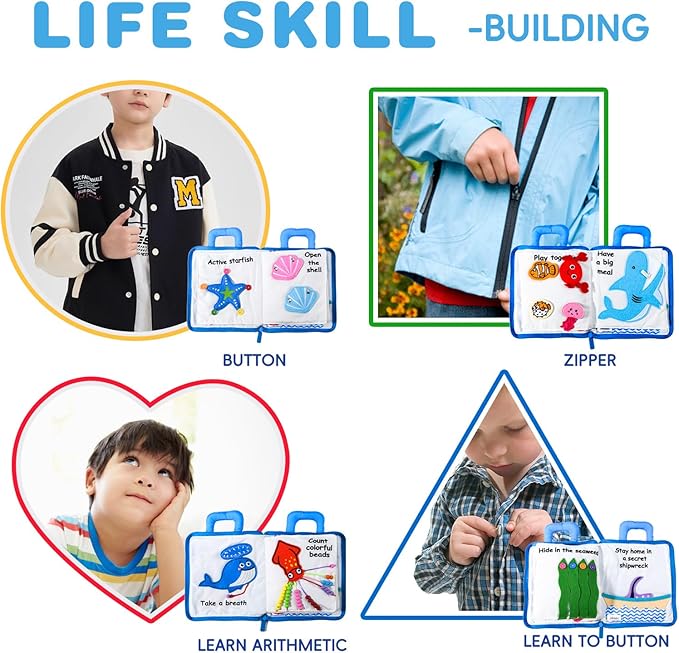 - Travel Toys: Car & airplane travel toys to keep your kids busy on long journeys. Early educational stimulation soft books for babies makes the travelling be full of challenges and quietness. Portable zipper handbag design to keep your baby company everywhere.