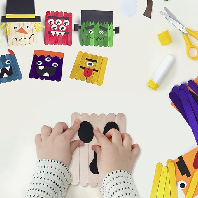 - EASY TO OPERATE: Each kit is individually packaged and includes decorative eyes, double-sided tape, self-adhesive foam board, pre-cut paper and colored sticks. Use your creativity to make your little Halloween monster with just a simple paste