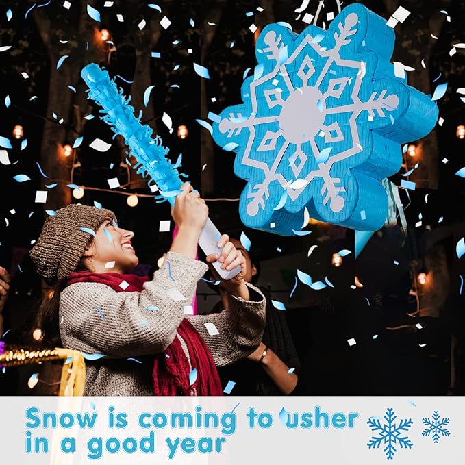 - Reliable and Serviceable to Use: featuring good workmanship and creative appearance, this snowflake fiesta piñata adopts reinforced corrugated cardboard with a sturdy plastic ring at the top and paper stickers at the filling mouth, easy to hang, reusable and very convenient
