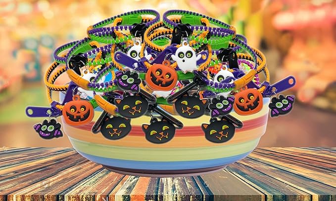 - Party Favorites: The 96 pack halloween zipper bracelets are a hit with kids, making them popular party favors. Perfect as bulk toys for Halloween treat bags, school classroom rewards, treasure box prizes, Non-Candy treats and more.