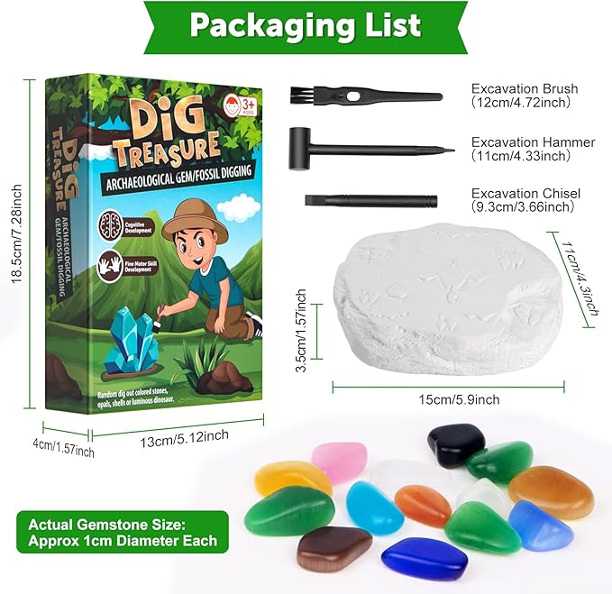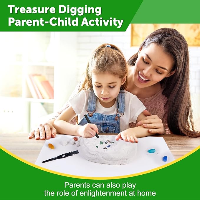 - ⚒【Educational Gifts for All Ages】Our gem digging toys are the perfect birthday, Christmas and New Years holiday gifts for boys and girls 3, 4, 5, 6, 7, 8, 9 and 10 years old and above. It provides an authentic digging experience that nurtures children's intellectual curiosity and hands-on skills through archaeological digging and gem exploration. This children's geography toy is contextual and ideal for home or classroom settings, promoting parent-child bonding and as a school teaching tool.