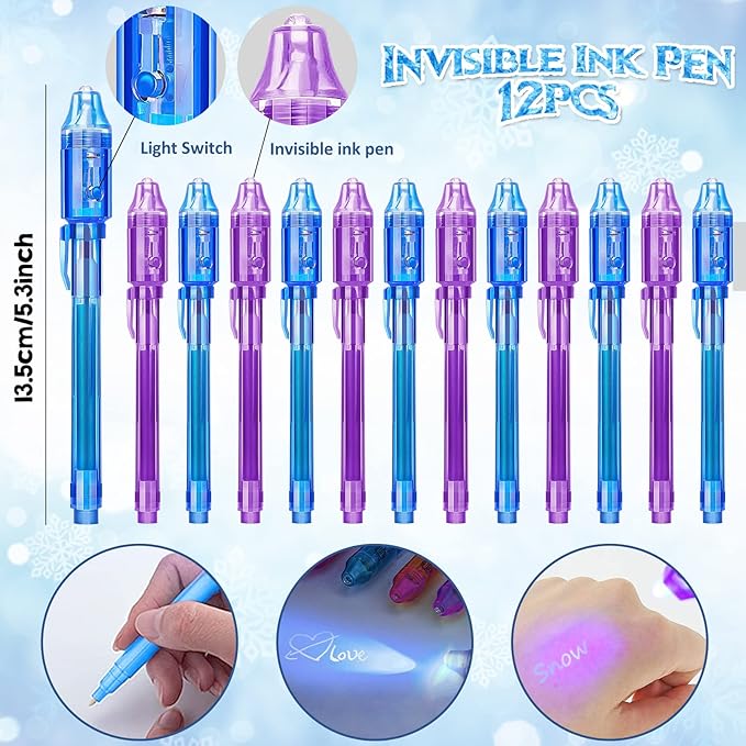- Safety Material: Invisible pens and stamps are made of high-quality plastic and are of solid quality. The bracelet is made of high-quality silicone, which is comfortable to wear. Snowflake notebooks are made of high-quality paper and are suitable for small children. All accessories are made of high-quality materials, safe, non-toxic, BPA-free, skin-friendly, and children can play with confidence