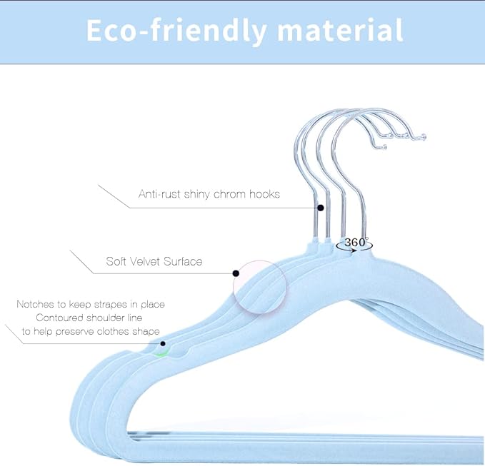 Kids Velvet Clothes Hangers, Non Slip Baby Hangers Blue(11.6" Inch - 40 Pack)