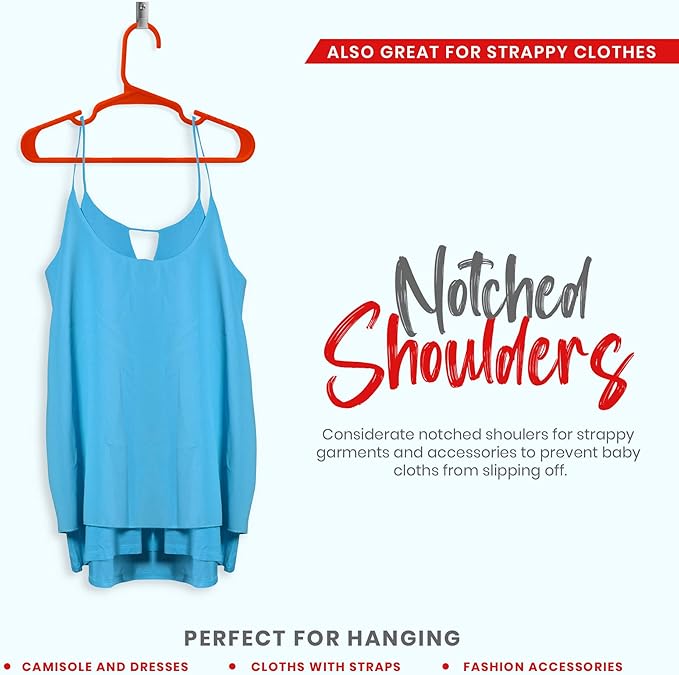 - Impeccable Fabrication- The kid’s clothes hangers comprises of reinforced plastic with built-in shoulder grooves, to prevent the baby clothes from slipping or falling off the hangers