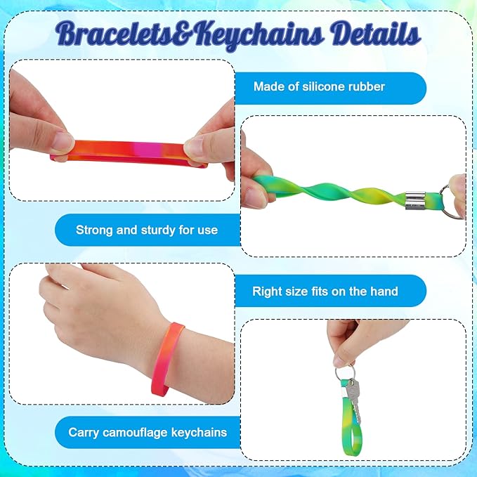 - Package Contains: you will receive 36 pieces party kits, including 12 pieces camo drawstring backpacks, 12 pieces army rubber bracelets and 12 pieces silicone keychains, multiple colors and different patterns designed to make you stand out from the crowd, sufficient quantity to meet your replacement needs, and you can also share with your family and friends