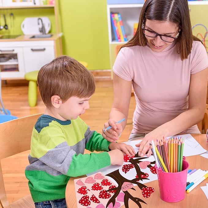 - Complete Craft Kit for Valentine’s Day:Includes 24 heart tree templates, 24 heart leaf cards, 10 sheets of self-adhesive glue points, and a roll of red ribbon. Perfect for DIY projects with kids, classroom activities, or home decorations. Great for creating heartfelt Valentine’s Day gifts.