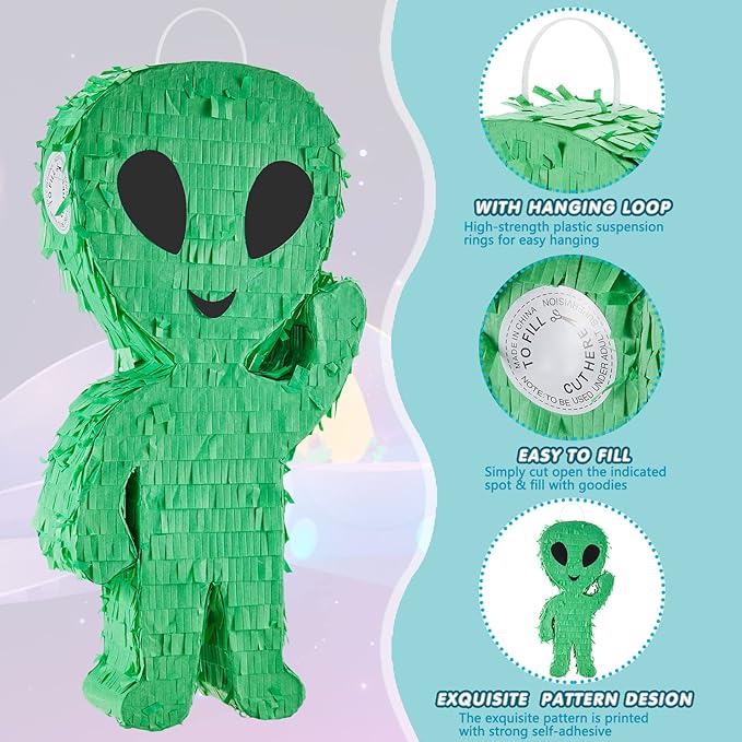 - Various Scenarios: the Piñata for alien decorations is applicable for many occasions, like Halloween, space themed party, cosplay, carnival, and other festivals, which can also serve as a photo prop, table centerpiece for theme party, creating cherished memories