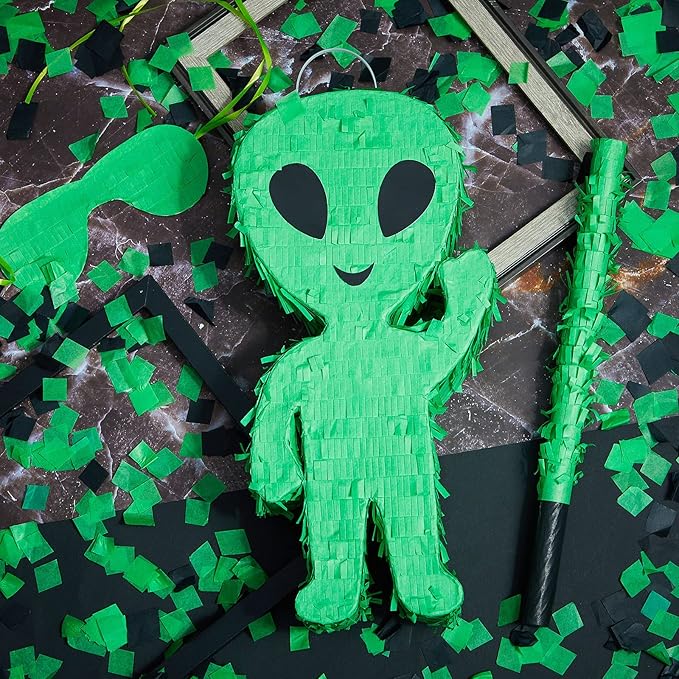- Nice Alien Party Piñata: you will receive 1 alien Piñata, 1 blindfold, 1 Piñata stick and 1 bag of confetti, a nice combination for you to play with friend and family at parties, enabling guests to have fun