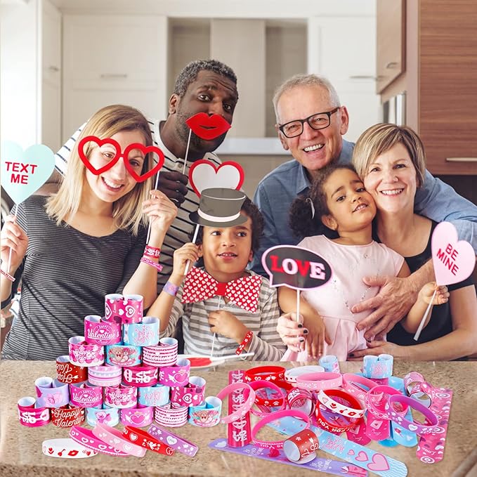 - 【Ideal Gift】Valentines slap bracelets is great Valentines day gifts for kids or Valentiens days classroom school exchange gifts. Our Valentine toys for kids is great choice for Valentine's Day.