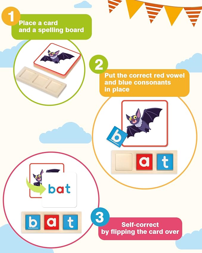 - Fun Learning Activity Games: This CVC word flash cards set is an interactive learning game for 3 4 5 6 year old boys & girls. The colors and pictures can catch the kid’s eyes and keep their attention, which can help them have fun while learning reading, spelling and phonics skills.