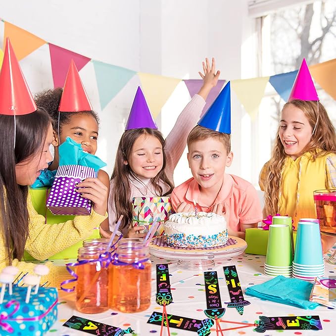 - Easy to Play: Only use the wooden sticks to draw on the black matte coating surface. Use your imagination and draw various patterns according to your preference. When finished, you can use ribbon to go through the holes in the bookmark for decorating gifts or party, of course you can give it to your classmates as a gift or collect it as your own work!