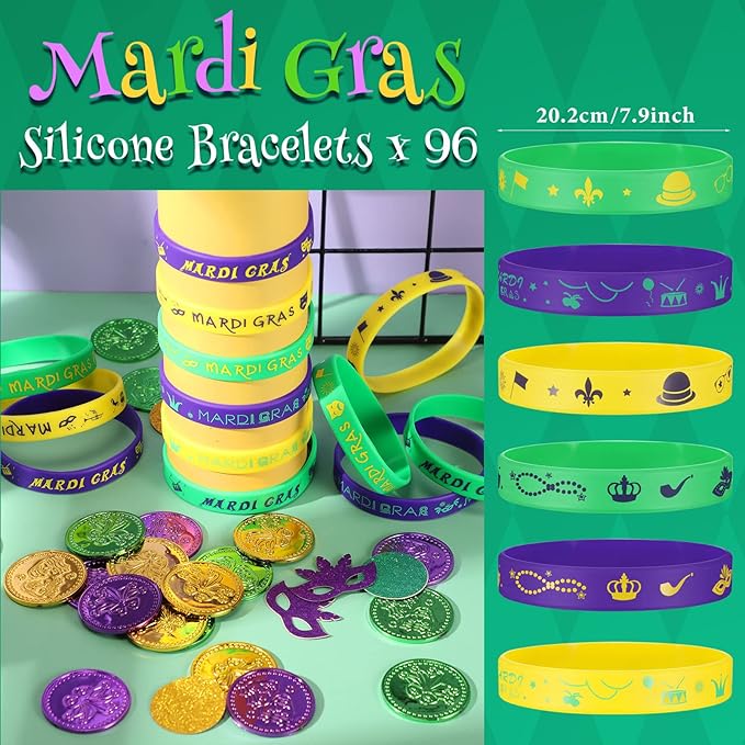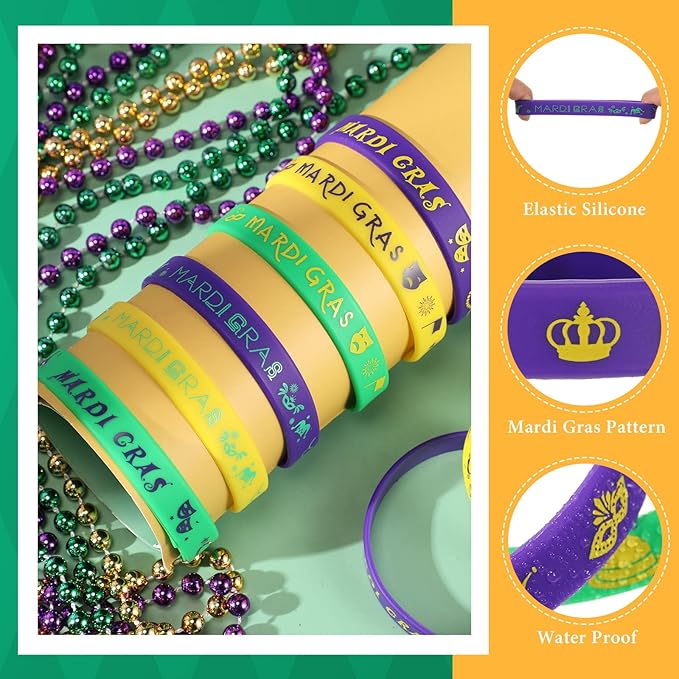 - Wear for Many Occasions: the Mardi Gras silicone wristbands are very suitable as parade throws, goodie bag stuffers or party gifts for guests, which also can be worn for carnivals, Mardi Gras parties, game parties, birthdays, baby showers and so on