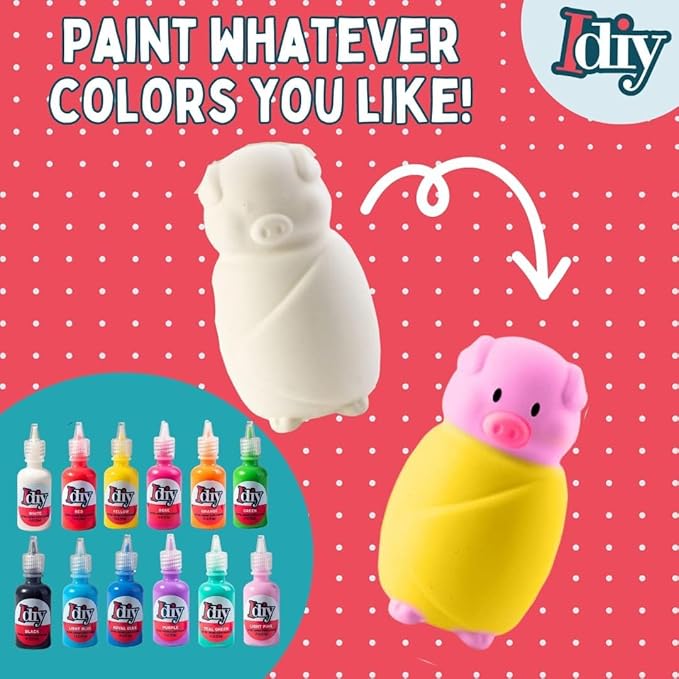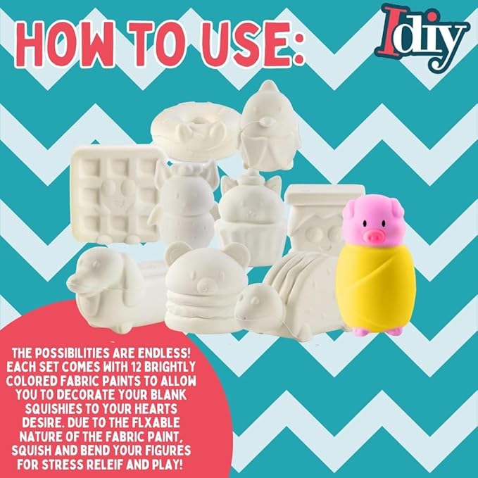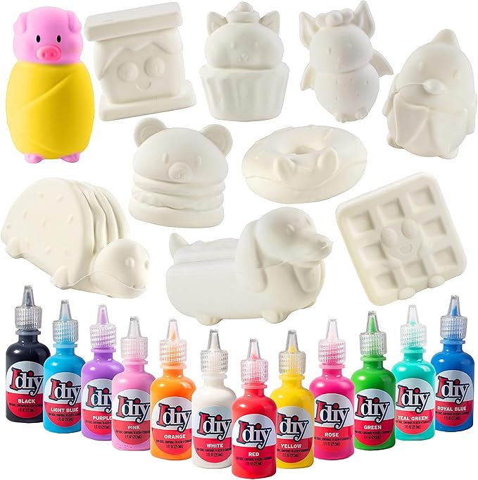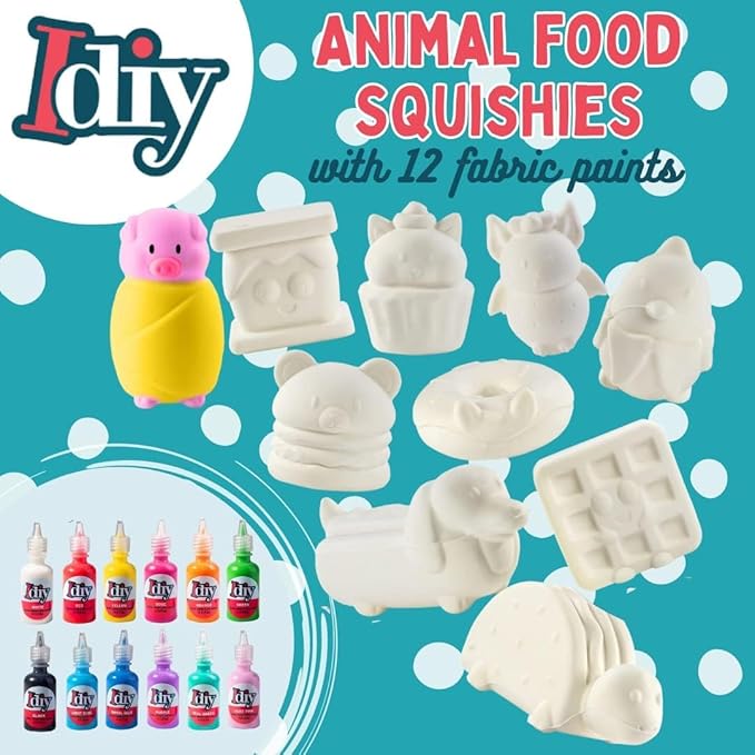 Jumbo Food Animal Squishies (10 Shapes w 12 Fabric Paints) -White Kawaii Scented Slow Rising Squishy Toys, Decorating, Scented Stress Relief Craft, Kids School, Birthday Party Activity Gift(4"-6")