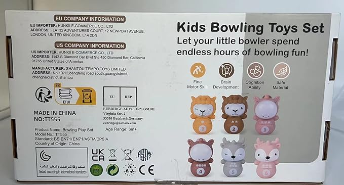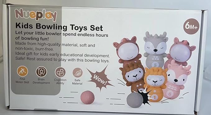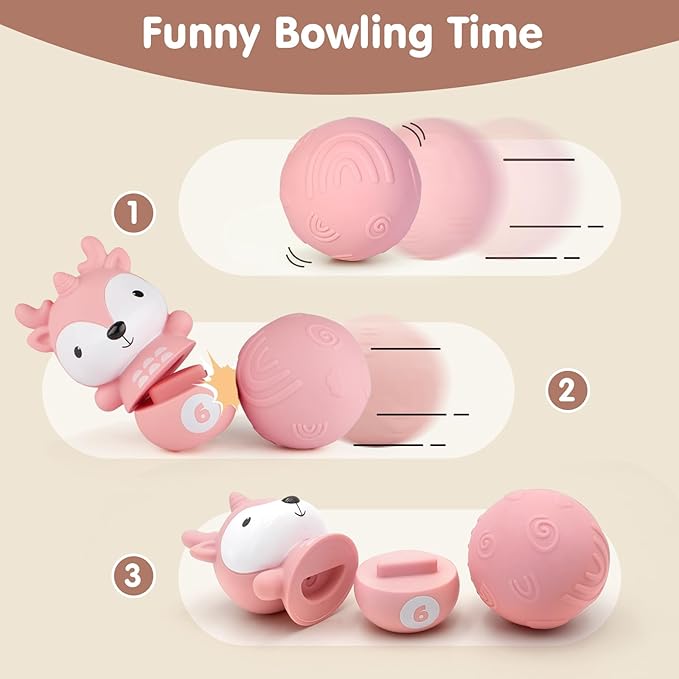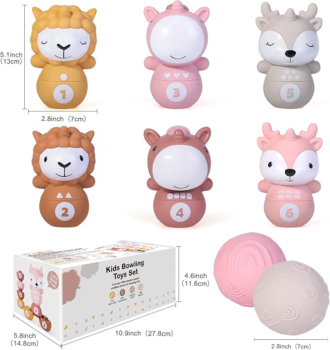 - Bowling Game Fun: Comes with two tactile balls, allowing kids to roll them like bowling balls to knock down the animal figures, adding interactive enjoyment.