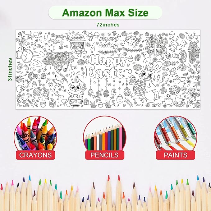 - [Reliable to Use]: Kids Easter gifts. Kids Easter coloring poster/ tablecloth:30*72 inch.This Easter kids arts coloring book is made of thick paper, which is reliable, clearly printed, and not easy to break, tear off, or fade, providing you with a pleasant using experience.