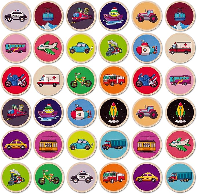 Montessori-Inspired Wooden Matching Game for Toddlers 2-4 Years - Things that Go - Durable, Scratch-Resistant 36 Card Set, Includes Carry Bag - Memory Game for Toddlers 2-4 Years - Means of Transport