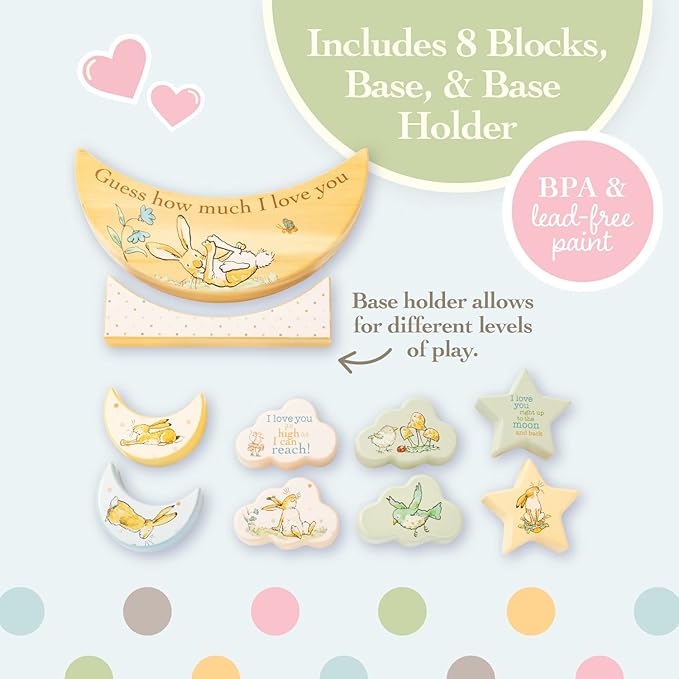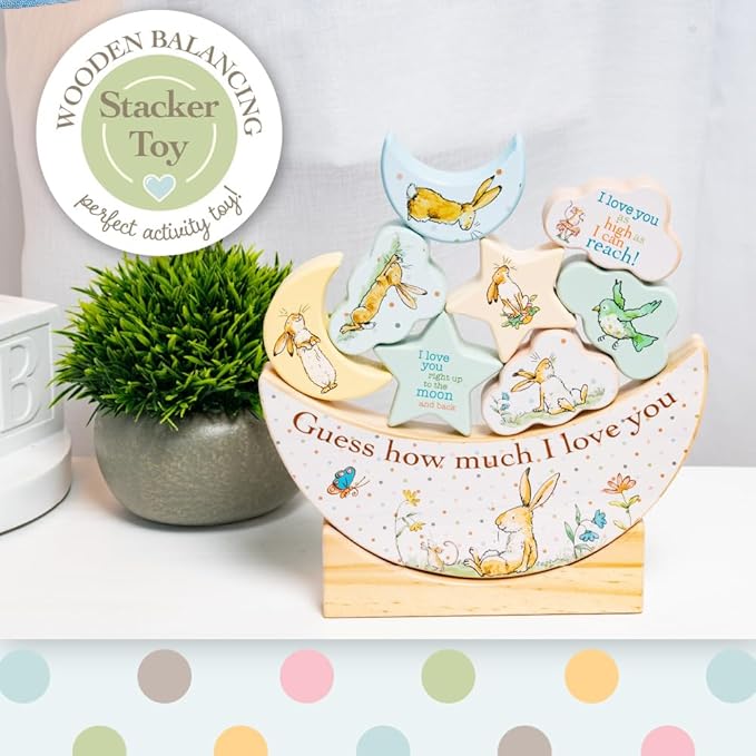 - Guess How Much I Love You: A fun and charming stacking toy for you and your baby and children to play with. This cute wooden block balancing toy makes the perfect toy and nursery decoration for your little one.