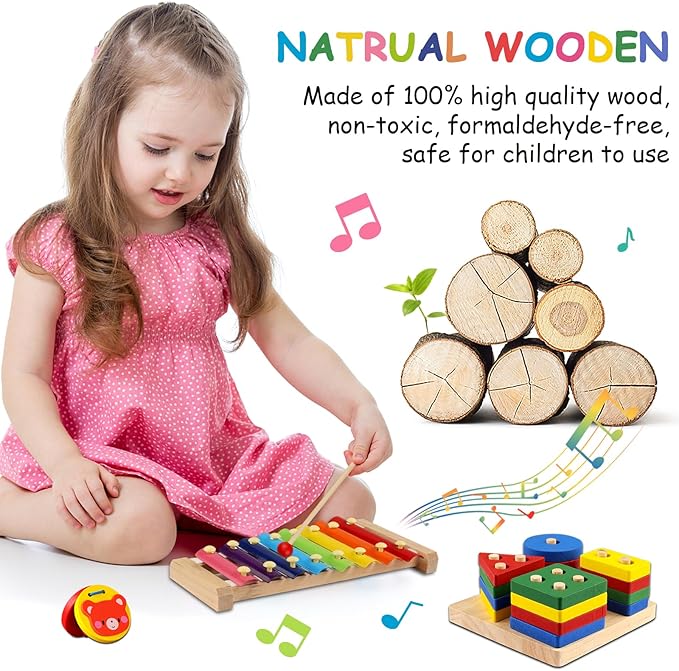 - 🎵【Best Montessori Musical Toys for Toddlers 1-3】:The toddler educational instruments are devoted to help kids in moving, grooving, and feeling the beat, cultivate children's sensitivity of music and the perceptive of rhythm, develop Kids Intelligence,and to improve children's hand-to-eye coordination, social skills and sharpen concentration.
