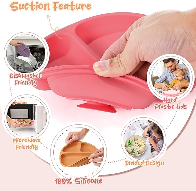 - Reliable Material: these silicone baby plates are made of quality, soft silicone, BPA and PVC free; Unbreakable silicone is the ideal material for toddler tableware; They are odorless and stain resistant; In addition, silicone is dishwasher, microwave and oven safe, just remove the lids and reheat them quickly in the microwave, then toss them in the dishwasher for a quick and easy cleanup