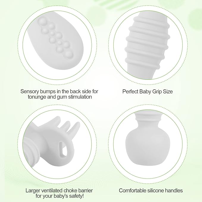 - Reliable Material: The baby chew spoons are made of 100% soft silicone, BPA free and PVC free. Soft and durable material will not scratch the child's mouth, protects baby's teeth and gums, which can help your babies get through the phase of teeth growth.