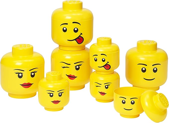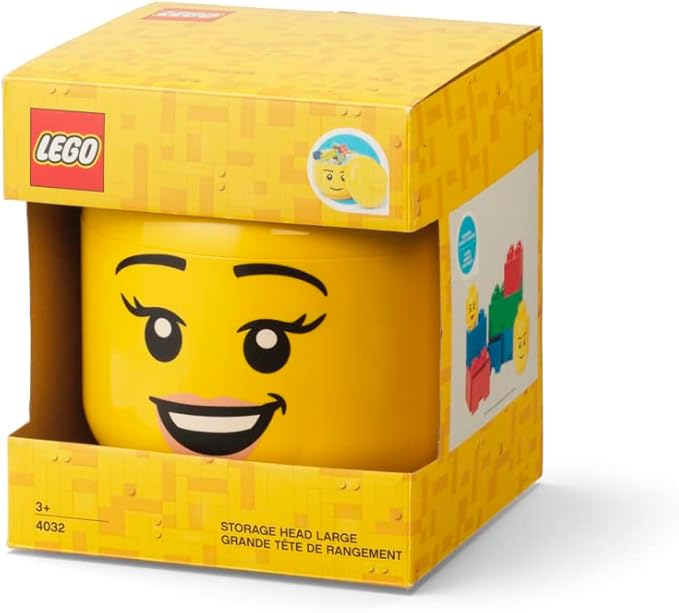 - FUN AND PLAYFUL: With this storage head kids will have fun while tidying up their rooms. Decorate, play, build, form and have fun with the boxes ; Ages 3+ ; LEGO bricks not included.