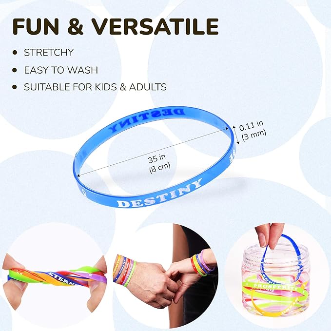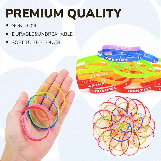- These wristbands rubber bracelets are tremendous treasure box prizes, carnival prizes and prizes for kids classroom. Silicone rubber wristbands always makes them excited and happy