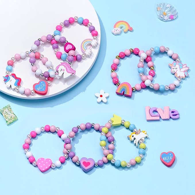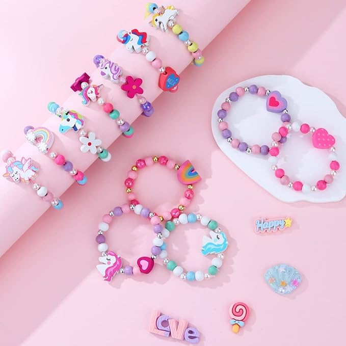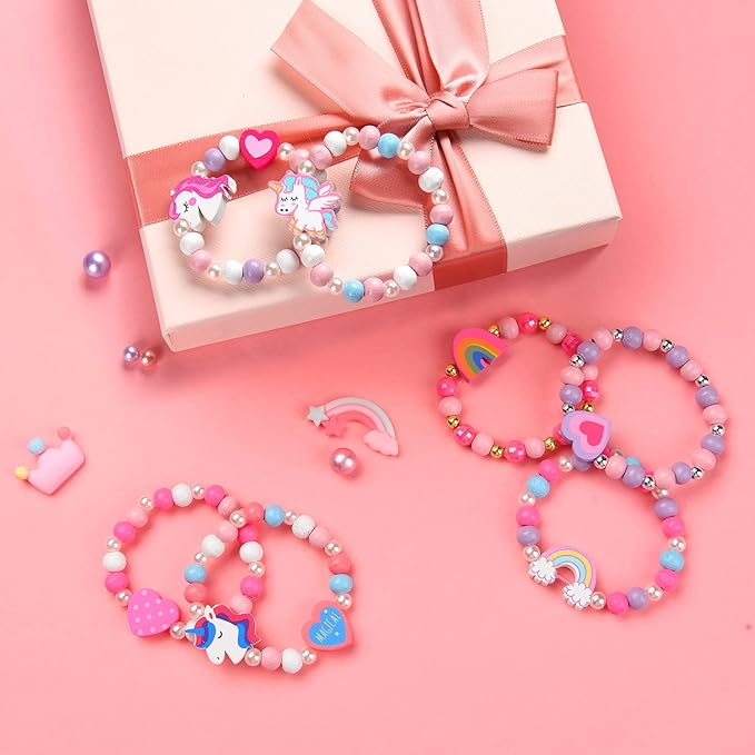 - SWEET GIFTS FOR GIRLS: Pink Unicorn gift bag packed bracelets set is a perfect gift ideal for your little girls on Birthday, Christmas, Easter day, Valentines or any other special day. Multi-colored bracelets adequate for kids to wear on various occasions to match girls fashionable outfit as the delicate daily dress up play costume jewelry.
