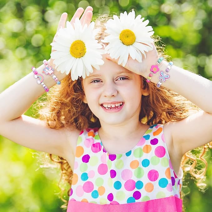 - SUITABLE SIZE: Each bracelet length is 16 cm/ 6.5 inches, which suitable for most age girls 3-12 years old to wear. The strong elastic that stretches well the beads and charms together, stretchable and firmness. There are easy for girls to take on and off because of the nice elasticity.