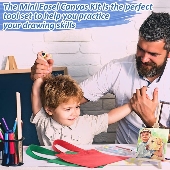 • Suitable Size to Use: the stretched canvases for painting measure about 4 x 4 inches/ 10 x 10 cm, and the easel is about 3.2 x 5.9 inches/ 8 x 15 cm, small and proper, matching each other nicely, convenient for kids to draw and paint, the gift bag is 8 x 8 inches/ 20 x 20 cm, easily accommodates a variety of gifts