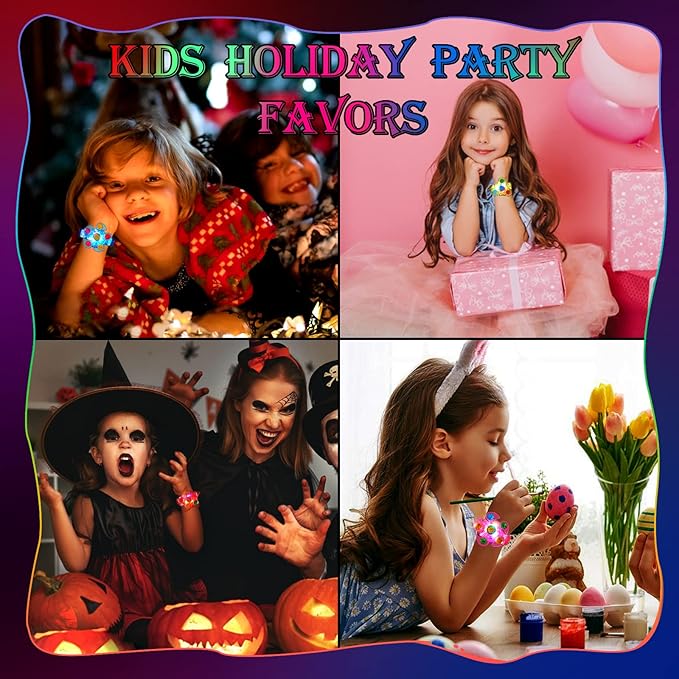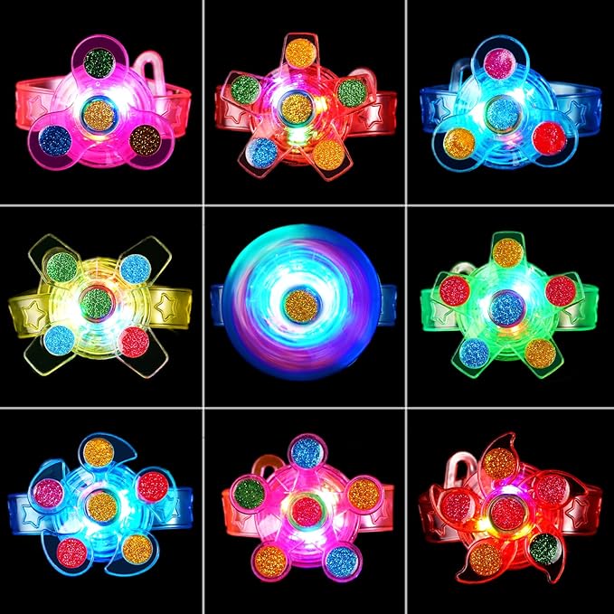 - Birthday Party Favors for Kids 4-8 8-12 - These kids party favors comes with 25 pack light up bracelets. Multiple random colors and various styles, our glow in the dark bracelets for kids combine kids bracelet, led lights and fidget spinner toy all of which are loved by kids. Great party favors for kids 8-12, fun to play with their friends.