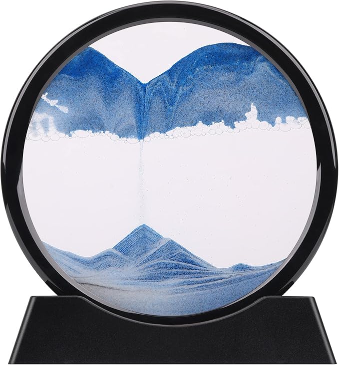 - NATURAL LEISURE:Turn the sand picture over to watch the battle of the elements: The sand just wants to settle at the bottom, the air just wants to escape to the top, the water hosts the party. The result is the sand trickles between the air bubbles to create fascinating stratification in the sand mountains. Watch the mountains, valleys and dunes that form in front of your eyes!Can relieve stress and eye fatigue.
