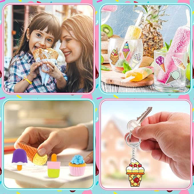 - Luxurious and Exquisite Gift Assembly: we provide various styles of ice cream stickers, bracelets, key chains, etc.; You can match various ice cream combinations according to your preferences, so that to attract your friends' attention at the ice cream party