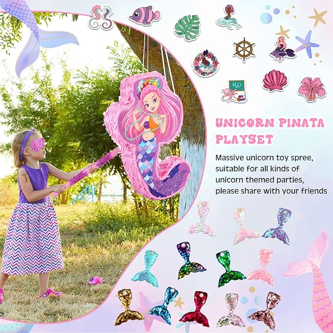 - Reliable Materials: mermaid piñatas for birthday party are made of thick cardboard, which are safe, non toxic reliable and children can play with confidence, be able to be applied for a long time