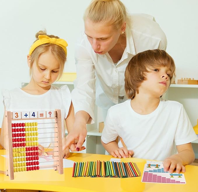 - High-quality Wooden Abacus Set for Kids: Our wooden abacus and counting sticks are crafted from durable and eco-friendly wood, ensuring long-lasting use and child-safe play.