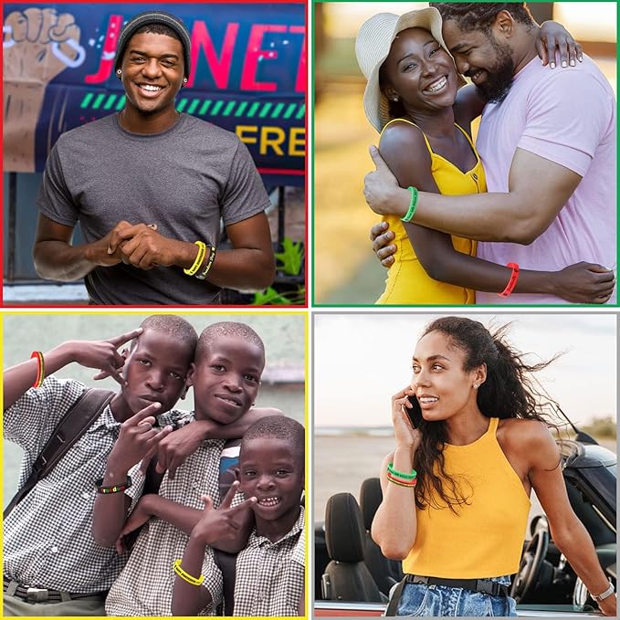 - Premium Material:Made of natural silicone,Juneteenth rubber bracelets are soft and durable, with strong support and not easy to deform. Juneteenth rubber bracelets have wonderful flexibility and can be stretched to accommodate different sizes of wrists, making these Juneteenth silicone bracelets ideal choice for adults and children