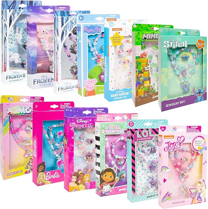 - Jewelry Set with Pink Stars - includes 1 bead necklace with emblem as the necklace centerpiece, 1 Toddler Bracelet with the emblem text, and 1 ring for Girls